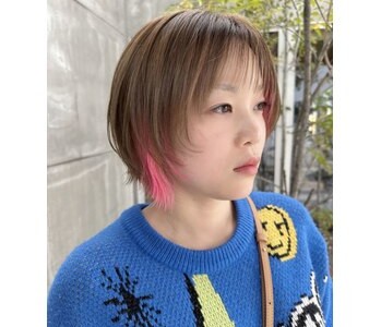 丸みボブ/ショートボブ/ピンク/インナーカラー