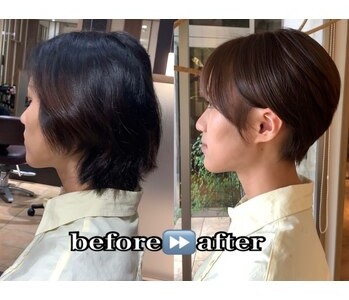 クセやボリュームでまとまりにくかった髪を、 首すじがきれいに見えるタイトなショートに。 余分な重さをなくし、頭の形がきれいに見えるようにカット。 軽やか …