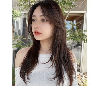 やわらかなロゼピンクがふんわり透ける、品のあるミディアムカールスタイル。 顔まわりは軽さを出しつつ、毛先にゆるいウェーブを重ねることで、動くたびにツヤと …