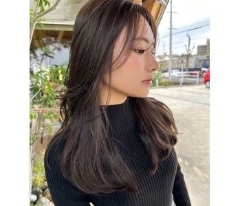 顔まわりに動きをつけた韓国レイヤー。 重すぎず、軽すぎず。 艶と透け感のあるダークブラウンで 品のある大人のロングヘアに。 空気を含んだような柔らかい質 …