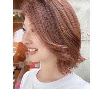 柔らかいオレンジブラウンで、 自然光に溶け込むような艶とあたたかみを。 軽く外にハネたボブに、 動きをつけてナチュラルな抜け感をプラス。 季節の変わり目 …